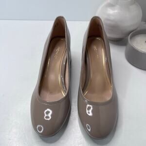 Vionic Carmel Patent Leather Slip On Chunky Heel Taupe Women's 9 M NWOB