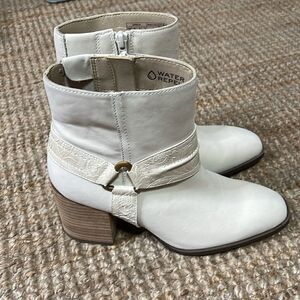 Vionic Carnelia Cream Leather Harness Heeled Booties Size 6
