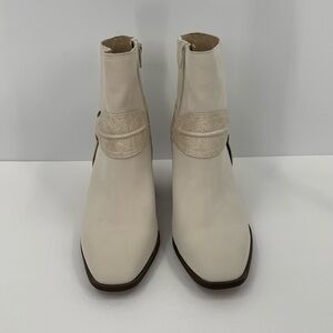 Vionic Carnelia ankle boots cream leather shoe heel tooled zipper new 9