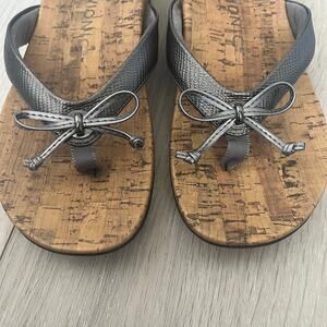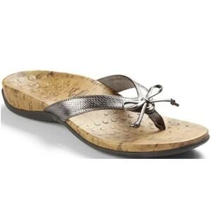 Vionic 'Cassie' Platinum Flip Flop Thong Bow Orthotic Comfort Sandal Silver