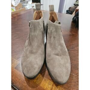 Vionic Cecily Stone Grey Weatherproof Suede Ankle Bootie Women’s Size 7 Block Heel Zip