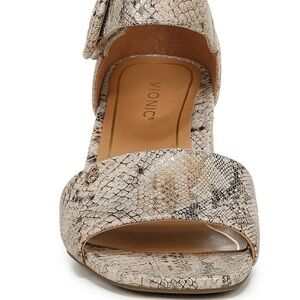 Vionic Chardonnay Heeled Sandal in "Oatmeal Leather Snake Print" Size 7.5