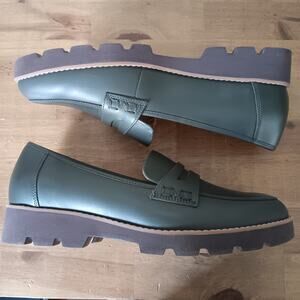 Vionic Cheryl II Dark Khaki Leather Loafer Shoe Women Size 9.5 W