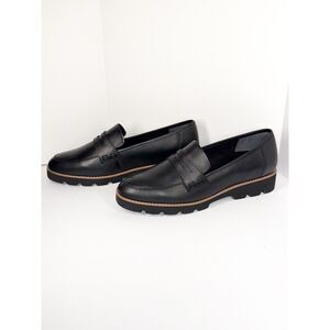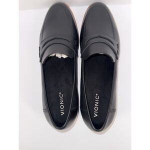 Vionic Cheryl Penny Loafer Black Leather Lug Sole Comfort Chunky Classic 12M NWB