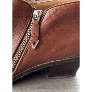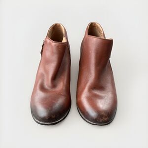 Elegant Vionic booties in chestnut leather. Features a sleek side zipper. Comfortable low heel.
