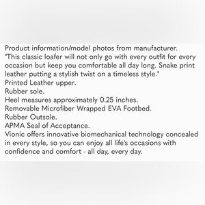 "This classic loafer will not only go with every outfit for every occasion but keep you comfortable all day long. Snake print leather putting a stylish twist on a timeless style."