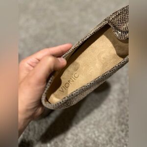 Vionic Chill Larrun Podiatrist Design Gunmetal Gold Snakeskin Print Loafers , size 8.5