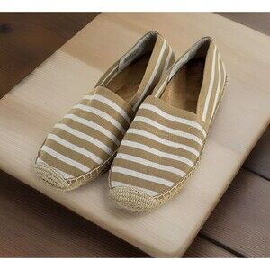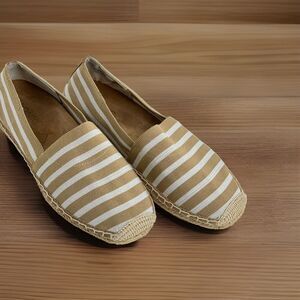 Vionic Coast Valeri Espadrille Flat Beige Striped Loafer Slip On Beach Sz 9.5