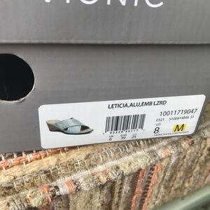 Vionic Cork Wedge 2” Heel Sandals Lizard Gray Size 8