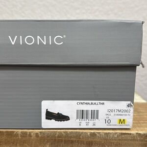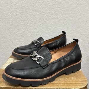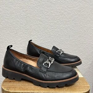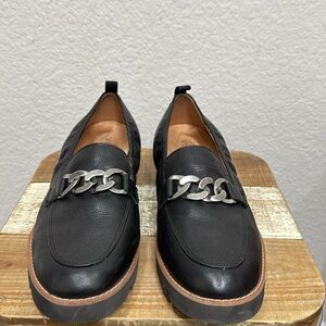 Vionic Cynthia Black Leather Chain Slip On Loafers Dize 10
