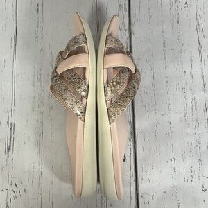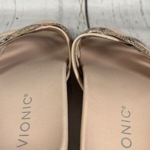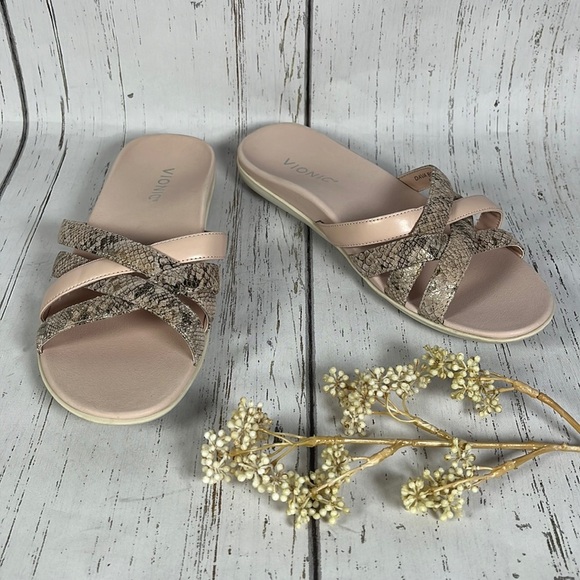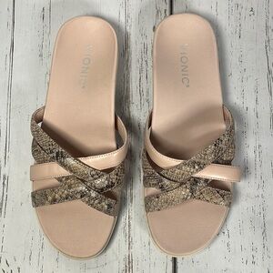 Reposhing these super cute Vionic slip on sandals. Love them but ready to rotate for something new.. really pretty pale pink with snake print on opposite straps. Healthy for feet. Reasonable offers will be considered. Size 6 1/2M.