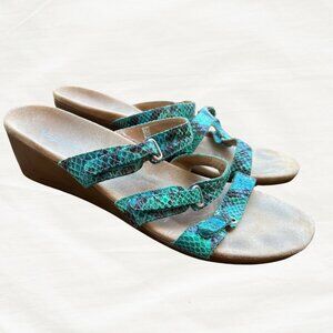 Vionic | Dwyn Green Snake Wedge Slide Sandals | Women 12 | Triple Strap Comfort