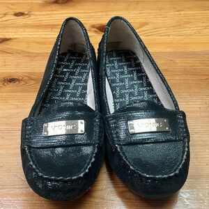 Vionic Ease Sydney Black Lizard Slip On Flat Loafer Women's Sz 8