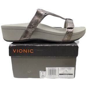 Vionic Ellie Platform Slide Sandal Metallic Silver Pewter Snakekin Women's 12