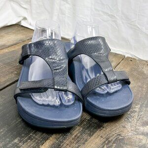 Vionic Ellie Wedge Sandal Womens 11 Navy Blue Orthotic Arch Walking Adjustable