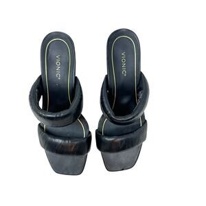 Vionic Emaline Slide Heeled Sandals Double Strap Leather Black Size US 9