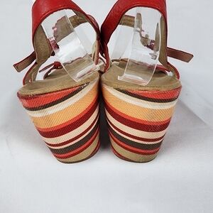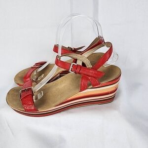 Vionic Enisa Striped Leather Strap Wedges Size 9