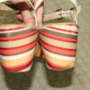 Vionic Enisa Womens Size 9 Striped Leather Strap Wedge Sandals