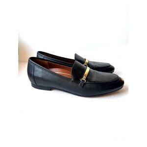 Step into elegance and comfort with these Vionic Evie black leather loafers. Crafted from premium leather, the gold accent adds a touch of luxury to any outfit.