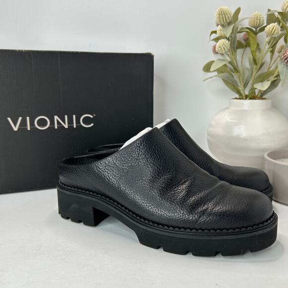Vionic Fairfax Vegan Leather Mule Slip On Black J0793L1001 Women's 6.5M Tried On