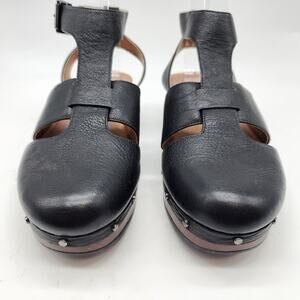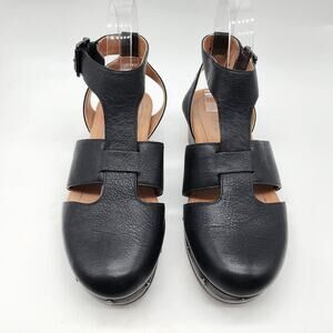 Vionic Faye T-Strap Platform Clogs Black Leather Arch Support Comfort Size 6