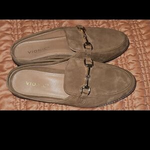 Elegant tan flats by Vionic. Perfect for casual and formal wear. Comfortable fit with durable sole.