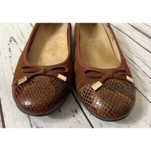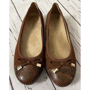 Vionic Flats Womens 6.5 Cap Toe Ballet Bow Brown Suede Snakeskin. In good condition with lots of wear left. See photos for details. I ship on the same or next day from a smoke free home. I make every effort to describe items honestly and price them fairly. Feel free to make an offer or ask any questions. Im happy to help.