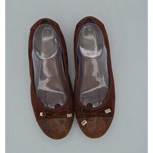 Vionic Flats Womens 8 Cap Toe Ballet Bow Brown Suede Snakeskin Minna EUC EU 39