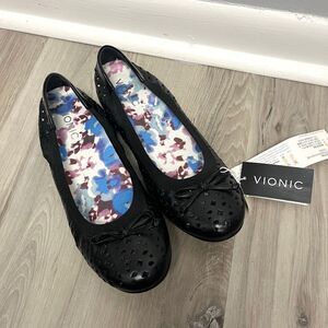 New with Tags Women’s Vionic Surin Black Perforated Leather High Arch Support Orthaheel Technology Flats in Size 8.5