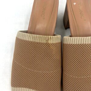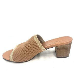 Vionic Fleur Heeled Slide Sandal Beige Fabric Women’s 9.5