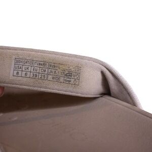 Vionic flip flop slip on sandals in tan yellow and white. Slip on style, no closures. Podiatrist design. Arch support. Size 8.