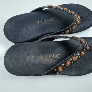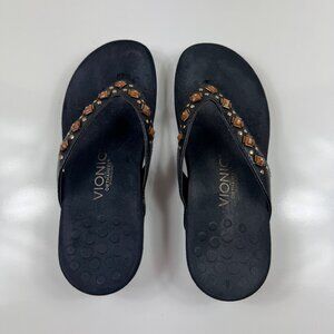 Vionic Floriana Sandals Size 7 Black Beaded Thong Croco Orthotic Comfort Beachy