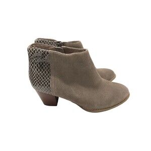 Vionic GREIGE Ankle Boots 322 BROMLEY Suede Faux Snake Size 6 TAN Booties.