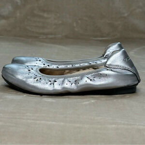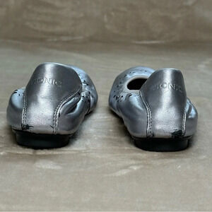 Vionic Geneva Ballet Flat Soft Metallic Silver Perforated Leather Sz 7.5