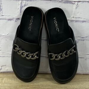 Vionic Georgie Black Leather Slip On Mules Women's Size 7.5 Comfort Clog Shoes