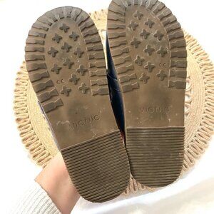 Vionic Georgie Navy Leather Chain Slip-On Mules Size 8.5