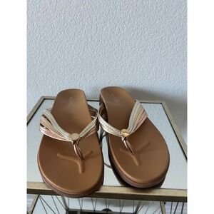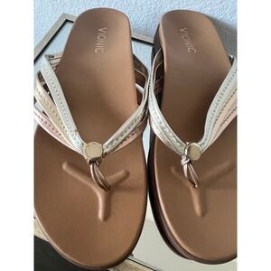 Keywords: Vionic sandals, gold flip flops, metallic sandals, womens sandals, size 8.5M, orthopedic sandals, comfortable sandals, leather flip flops, beach sandals, summer shoes, casual sandals, designer sandals, podiatrist designed