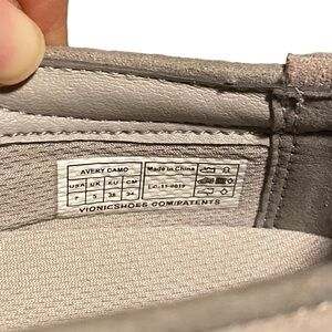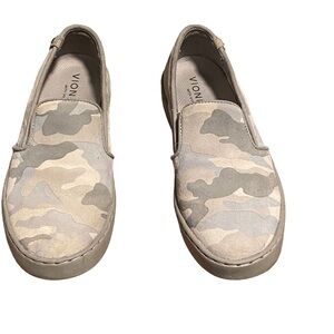 Vionic Gray Camo Avery Pro Suede Slip-On Sneaker. Casual comfort, slip-resistant, slip-on. Water-resistant suede upper and man-made lining. Light signs of wear, overall great pre-owned condition.