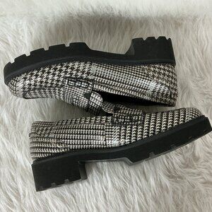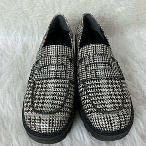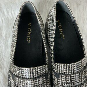Vionic Gray White Black Metallic Houndstooth Fillmore Lug Penny Loafers 9.5