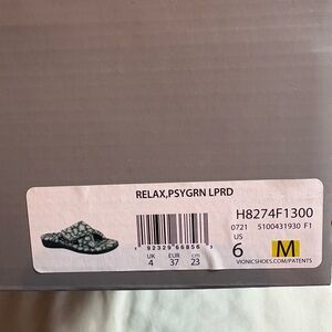Cozy green patterned slippers with adjustable strap. Perfect for comfort and style. Never worn.