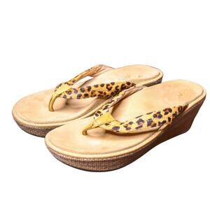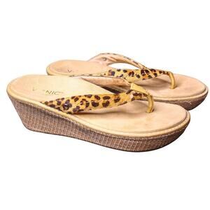 Vionic Grenada Leopard Print Thong Wedge Heel Sandals Straw Weave 9