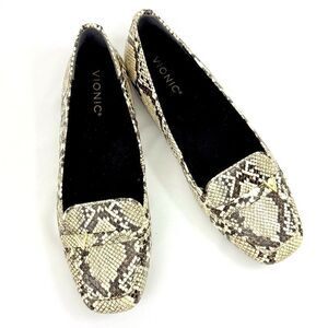 Vionic HAYES Cream Brown Snakeskin Print Slip On Orthotic Driving Loafers