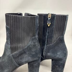 Vionic Heeled Boot Size 8.5 Kaylee Side Knit Black Suede Water Resistant