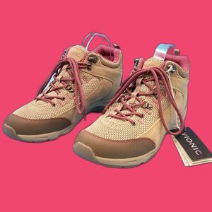 New Vionic tan & pink hiking boots in a size 10. Vionic is knowN for comfort, style and durability, and these boots have it all. Hike for miles and look good while doing it.