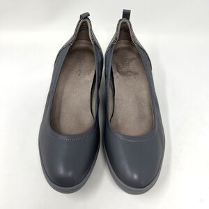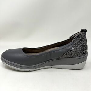 Vionic Jacey Comfort Shoes Gray Leather Slip On Low Wedge Heel Women’s Size 8