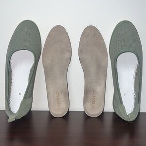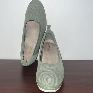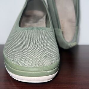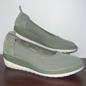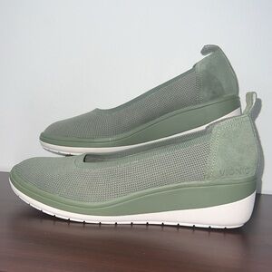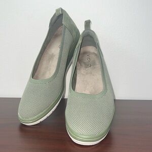 Vionic Jacey Knit Army Green Suede Trim Slip On Loafers