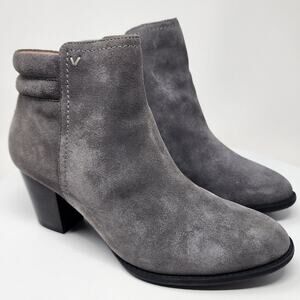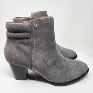 Vionic Jessie Heeled Ankle Boot Women 9.5 Grey Suede Side Zip Weather Resistant