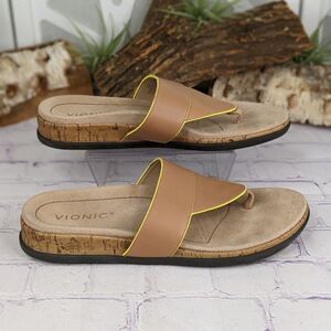 Vionic Jillian Women's Toe Post Platform Sandal. Keeps your feet happy with luxurious leather, intricate design, and cork wrapped base. Available after May 2021. Vionic footwear is stylish and comfortable and incorporates a podiatrist designed biomechanical footbed for support.