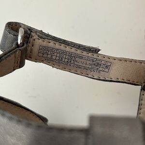 In good preowned condition. Please see last two photos. Marker spot on the bottom of the shoe and another faint mark on the left shoe strap. Please let me know if you have any questions