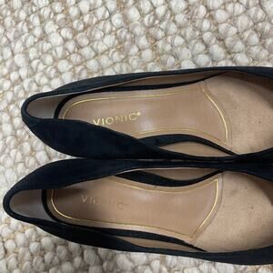 Vionic Josie Black Suede Kitten Heels SZ 8.5 Classic Low Pumps Office Work EUC